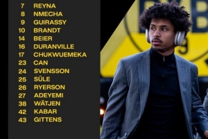 多特客战巴萨名单:吉拉西在列,施洛特贝克、萨比策、格罗斯缺席